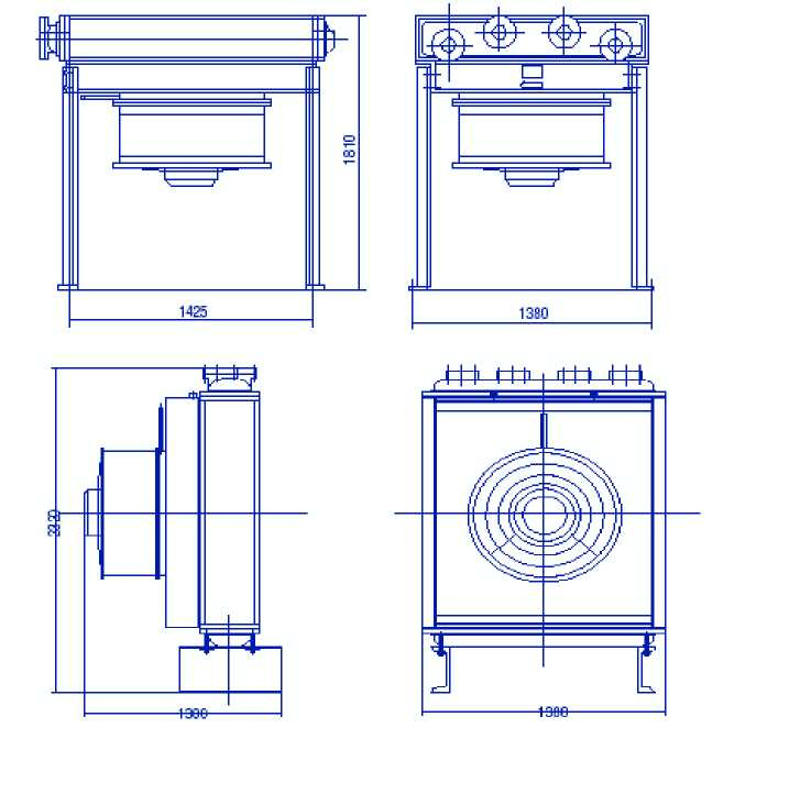По требованию заказчика аппараты могут изготавливаться без опор, а также с дополнительными сборочными единицами: комплектом жалюзи с ручным или пневматическим приводом, увлажните-лем воздуха, подогревателем воздуха, пневмоприводом регулировки лопастей вентилятора.